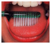 刷靠牙齦部分時,要特別將刷面成45度向著牙齦溝,以清潔牙齦與牙齒交界處之牙齦溝。另外也要注意將矯正器的上下邊緣刷乾淨!